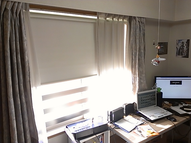 部屋の西日がハンパないので、太陽上りきったあと、カーテン閉めないと顔面への直射がヤバかった。でも完全に閉じてしまうと光が入らなくて健康に良くないし、かといって左右から遮光しても、太陽の上下が直射日光を生んでるわけで。