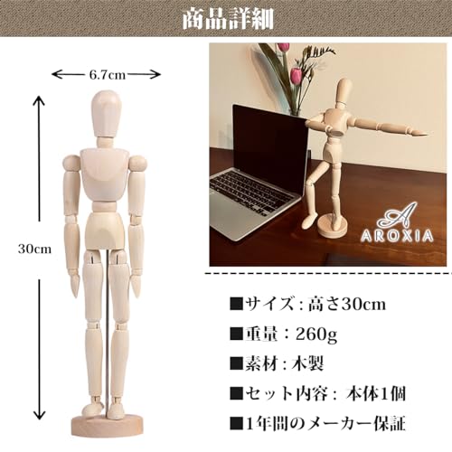 とにかく可動域が広い。手のカタチがいくつかオプションとしてつき、カラダの凹凸も木製よりはわかりやすい。そのかわり高い。安いフィギュアは可動域が狭くこわれやすいので、安さ基準なら木製人形のほうがいいとおもいます。